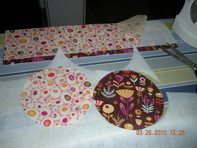 Cut out and iron your fusible fleece onto your basket front, lining, and both circles. The only pieces NOT "fleeced" are your handle pieces. Hint: lay your cut pieces onto your fusible fleece and use as a cutting guide!