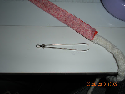 Slip the bodkin into the fabric tube. See it sticking out there?
